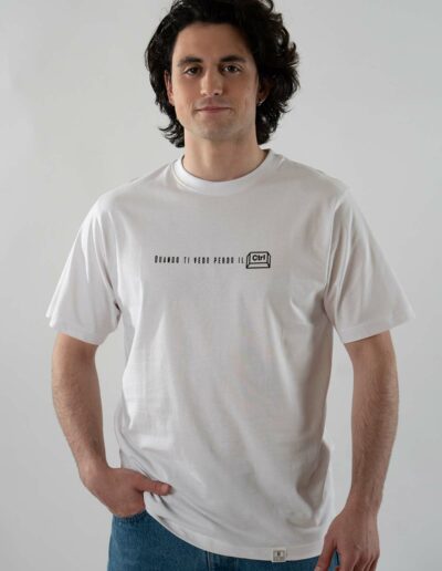T-shirt regular fit – 100% cotone peso 210 Gsm- Etichetta fondo capo in silicone – Grafica “Quando ti vedo perdo il controllo” High Density in rilievo piazzata sul davanti – Altezza girocollo 2 cm – Neck tape personalizzato in contrasto colore